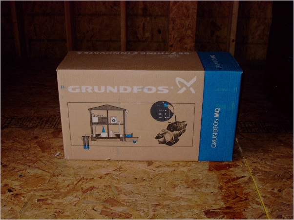 The model MQ pressure booster, made by Grundfos, came in this box.