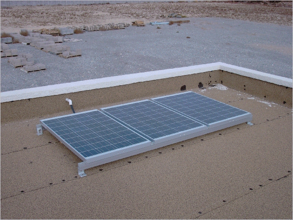 View of North East corner of roof with 3 solar panels.